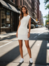 Discover the sophisticated charm of Klarissa at Azalea A La Mode. This sleeveless short dress combines comfort and elegance with its perfect blend of 60% spandex and 40% cotton, ensuring a flattering fit and unparalleled ease. The unique gold touch on the shoulders adds a hint of sparkle, allowing you to shine and stand out at any occasion. At our local boutique, we pride ourselves on quality and style, making Klarissa an ideal addition to your wardrobe. Visit us today and experience the elegance of Azalea A La Mode.