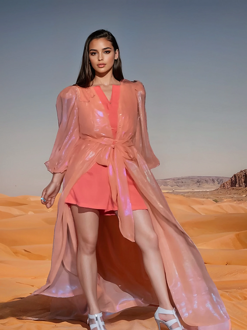 This exquisite three-piece outfit is made with Zari metallic Chiffon Jacquard, combining luxurious comfort with irresistible allure. It's the ideal choice for making a statement and standing out in any crowd.