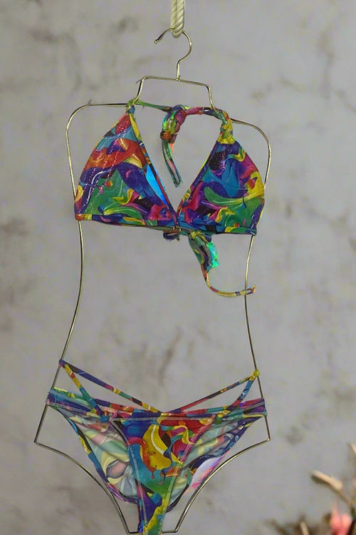 Turn heads and make a splash with our vibrant, colorful two-piece bathing suit. Designed for the woman who loves to stand out, this playful set features a bold mix of colors that radiate energy and confidence. The flattering top provides support and comfort, while the multiple strings bottom offers a sleek, chic silhouette. Perfect for beach days, poolside lounging, or a tropical getaway, this swimsuit is all about fun, fearless style. With its eye-catching hues and timeless design, you'll feel confident, comfortable, and ready for anything the summer brings.